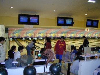ボウリング場でプレーする選手達